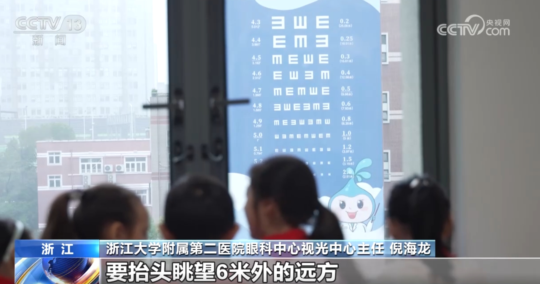 保護(hù)視力,既需要營(yíng)造有益視力的學(xué)習(xí)環(huán)境,還需要孩子們加強(qiáng)視力鍛煉。在浙江湖州南潯區(qū)善璉學(xué)校,每天上下午各一個(gè)時(shí)間段,學(xué)生們就會(huì)在老師的帶領(lǐng)下做“望遠(yuǎn)心遠(yuǎn)”課間操,由近而遠(yuǎn)觀察100米以外的物體,可以辨認(rèn)教學(xué)樓外墻的大幅視力表,也可以看看空中飛翔的小鳥(niǎo),還可以數(shù)數(shù)樹(shù)上結(jié)的果子,通過(guò)遠(yuǎn)近交替聚焦,鍛煉遠(yuǎn)視能力,預(yù)防近視。