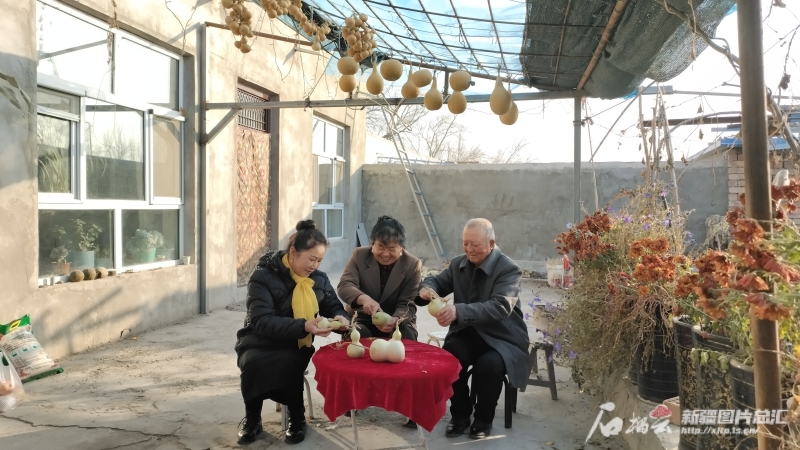 11月19日,焉耆回族自治縣永寧鎮(zhèn)下岔河村陽光明媚。村民陳新萍忙完家務(wù),早早來到同村的帕提古麗·艾沙家,兩人開始一起摘葫蘆、裝筐、去皮,為趕制下一批烙畫葫蘆做準(zhǔn)備。