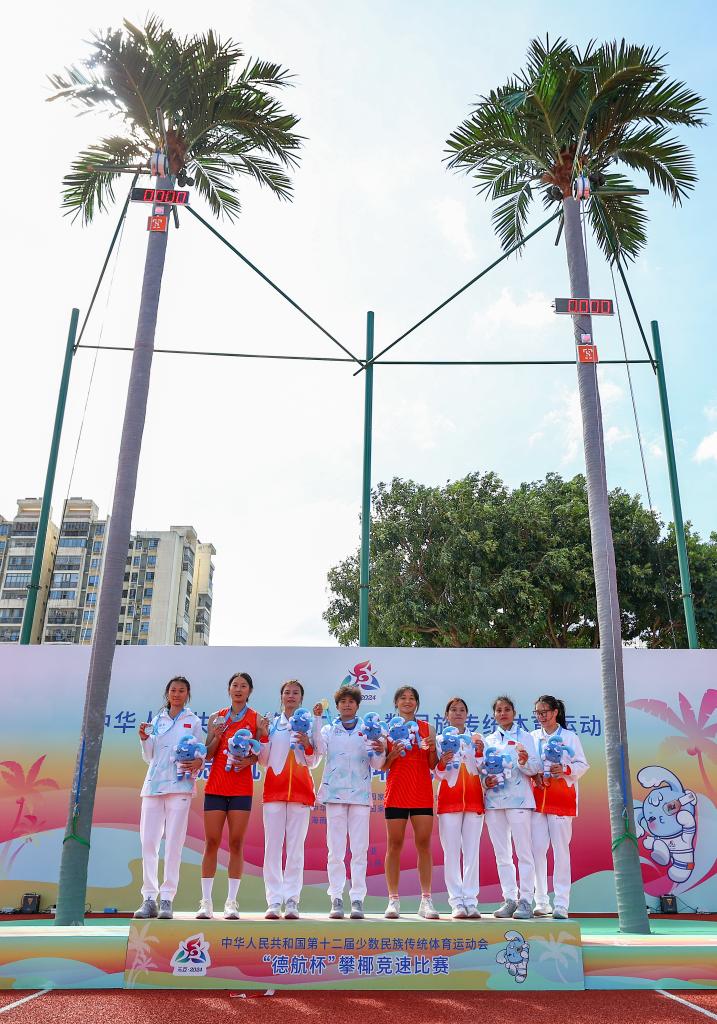 24日,第十二屆全國少數(shù)民族傳統(tǒng)體育運(yùn)動(dòng)會(huì)攀椰競速比賽結(jié)束爭奪,海南隊(duì)的羅軍和符詩軍分獲男子、女子一等獎(jiǎng)。