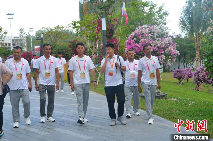 11月25日,海南三亞,第十二屆全國少數(shù)民族傳統(tǒng)體育運(yùn)動會參賽代表團(tuán)在三角梅科博園參觀考察。張?jiān)潞?攝