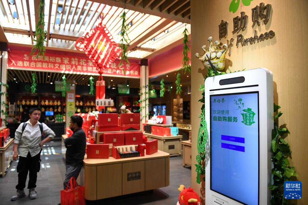 在吳裕泰北新橋總店內(nèi)設置的自助購(4月16日攝)。新華社記者 鞠煥宗 攝
