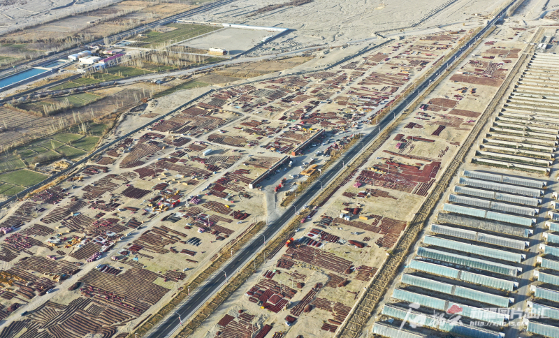 315國道策勒縣段兩側的千畝紅棗晾曬場(11月29日無人機攝)。