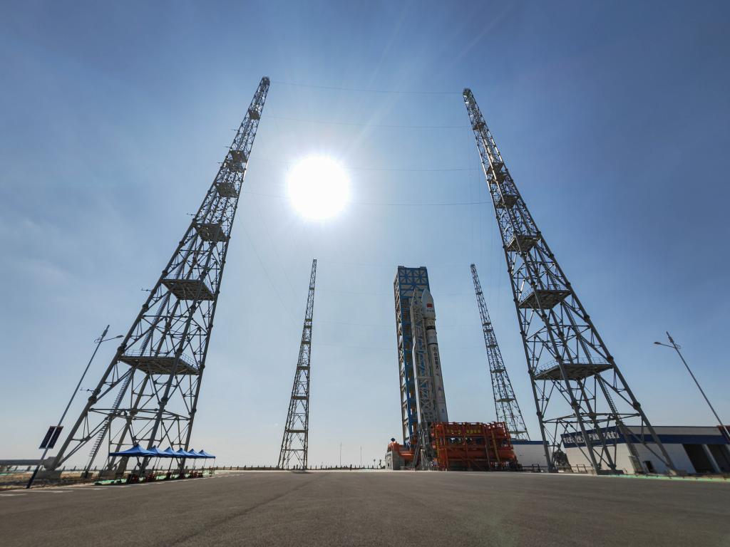 11月29日拍攝的海南商業(yè)航天發(fā)射場二號發(fā)射工位和等待發(fā)射的長征十二號火箭。新華社記者 蒲曉旭 攝