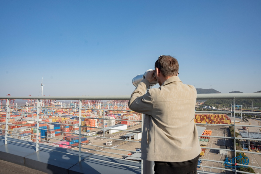 記者們站在觀景平臺,通過望遠(yuǎn)鏡親眼見證了全球最繁忙集裝箱港口之一的現(xiàn)代化作業(yè),他們爭相與壯觀的碼頭場景合影留念。來自哈薩克斯坦《誠實(shí)報(bào)》社會文化部主任納烏雷茲別克·薩爾沙耶夫在接受環(huán)球網(wǎng)記者采訪時(shí)說道“寧波舟山港的運(yùn)作效率和智能化管理令人贊嘆,它無疑是全球物流行業(yè)的標(biāo)桿。”
