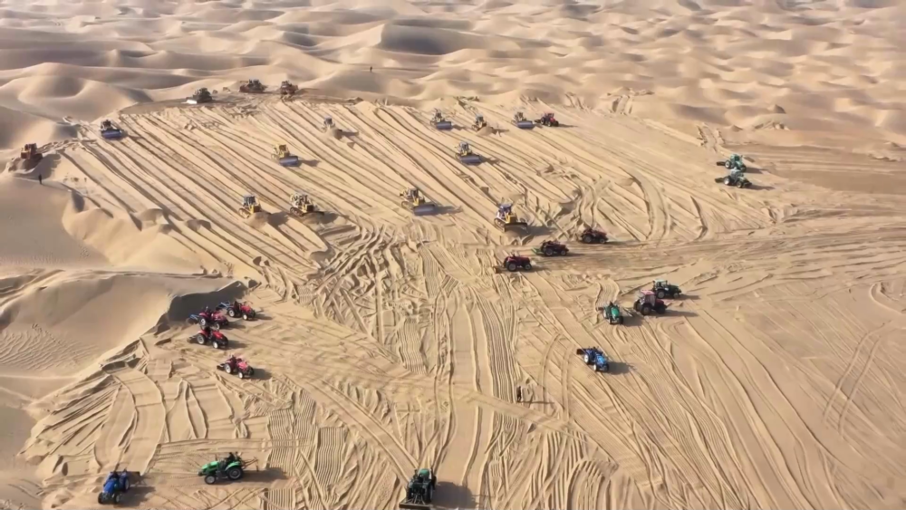 在發(fā)展沙產(chǎn)業(yè)的過程中,新疆和田地區(qū)民豐縣多措并舉深入推進(jìn)“三北”工程攻堅戰(zhàn)、扎實推進(jìn)塔克拉瑪干沙漠邊緣阻擊戰(zhàn)。12月5日,民豐縣后河壩沙漠邊緣,大型推土機(jī)來回穿梭、平整沙地。一大早,尼雅鎮(zhèn)甫甫克村村民麥麥提·麥提賽伊迪與愛人就來到自己承包的沙地,查看沙丘的平整情況。