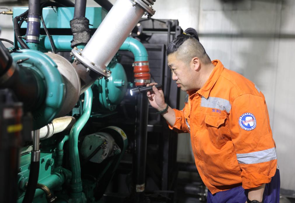 發(fā)電班班長張冬在對(duì)發(fā)電機(jī)進(jìn)行巡視檢查(12月1日攝)。新華社記者 黃韜銘 攝