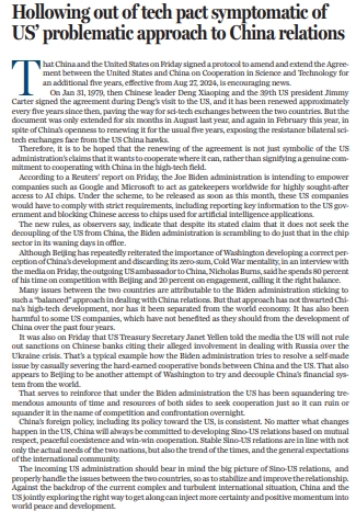 協(xié)定原定于2023年8月再次續(xù)簽,盡管中方對按慣例續(xù)簽5年始終表示歡迎態(tài)度,但當時協(xié)定只短期延長了6個月,今年2月到期后,又再次延長6個月,這一動向,也暴露出美國對華鷹派對中美間科技交流所持有的反對態(tài)度。