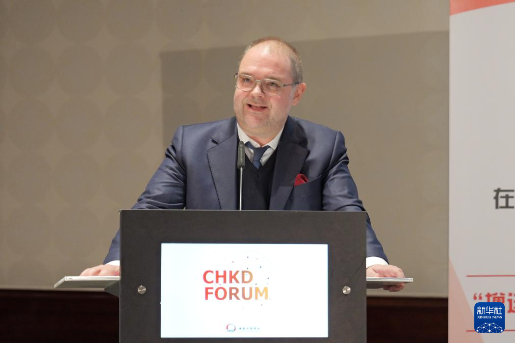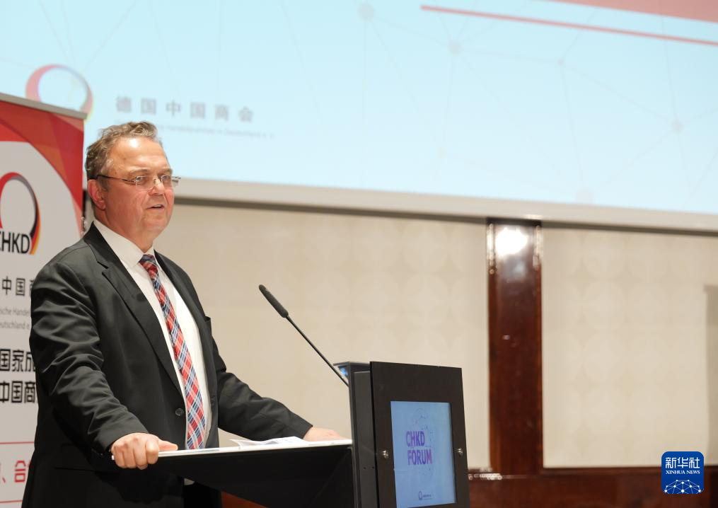 12月5日,德國(guó)聯(lián)邦勞動(dòng)及社會(huì)事務(wù)部國(guó)際勞動(dòng)及社會(huì)政策司司長(zhǎng)卡斯頓·施滕德?tīng)栐诎亓峙e行的德國(guó)中國(guó)商會(huì)2024年度論壇上發(fā)表講話。新華社記者 邰思聰 攝