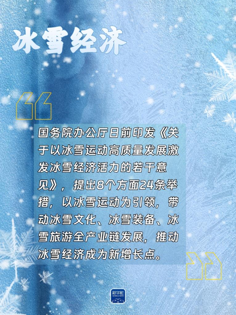 【解析】國務(wù)院辦公廳日前印發(fā)《關(guān)于以冰雪運動高質(zhì)量發(fā)展激發(fā)冰雪經(jīng)濟活力的若干意見》,提出8個方面24條舉措,以冰雪運動為引領(lǐng),推動冰雪經(jīng)濟成為新增長點。明確到2027年冰雪經(jīng)濟總規(guī)模達到1.2萬億元,到2030年冰雪經(jīng)濟總規(guī)模達到1.5萬億元。