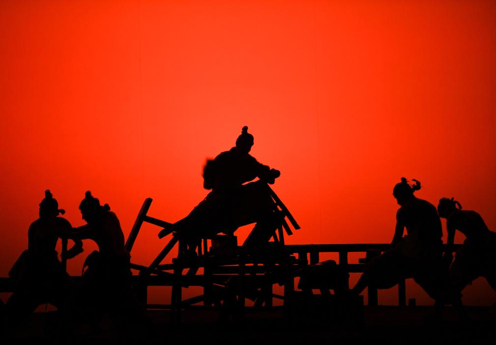 這是以“云夢睡虎地黑夫木牘”為靈感創(chuàng)排的大型歷史舞臺劇《赳赳大秦》演出現場(2024年9月25日攝)。 新華社記者 張博文 攝