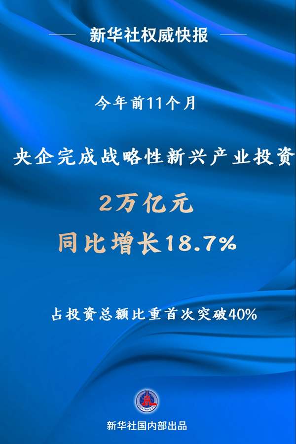 今年以來,中央企業(yè)堅(jiān)守實(shí)體經(jīng)濟(jì),在新興產(chǎn)業(yè)的布局節(jié)奏加快,1至11月完成戰(zhàn)略性新興產(chǎn)業(yè)投資2萬億元,同比增長18.7%,占投資總額比重首次突破40%。