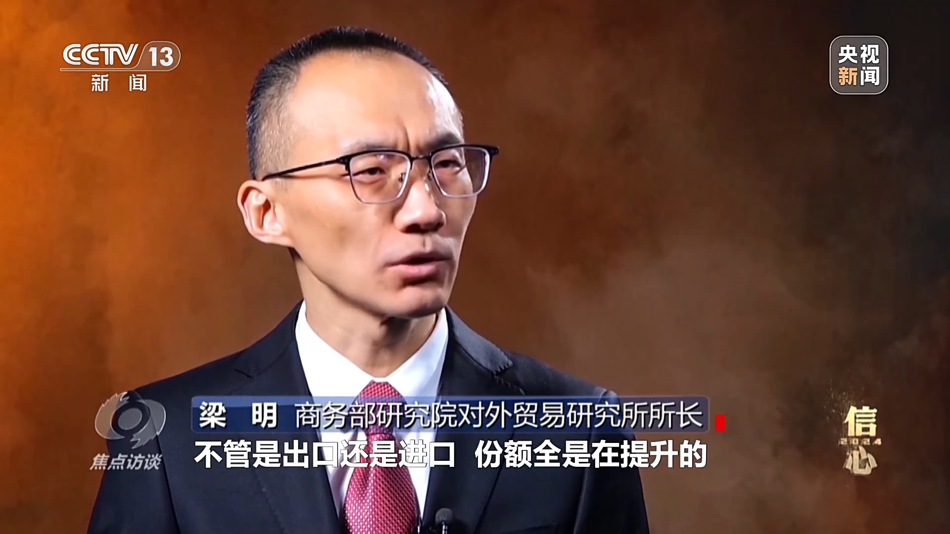 商務(wù)部研究院對外貿(mào)易研究所所長 梁明:“今年前三月,中國出口同比增速4.7%。前11月,增速達(dá)到了6.7%,在逐漸回穩(wěn)向好。不管是出口還是進(jìn)口,份額全是在提升的,顯示了中國貿(mào)易在全球中的地位進(jìn)一步凸顯,貿(mào)易的質(zhì)量,還有貿(mào)易的結(jié)構(gòu)在逐步優(yōu)化?!?/p>