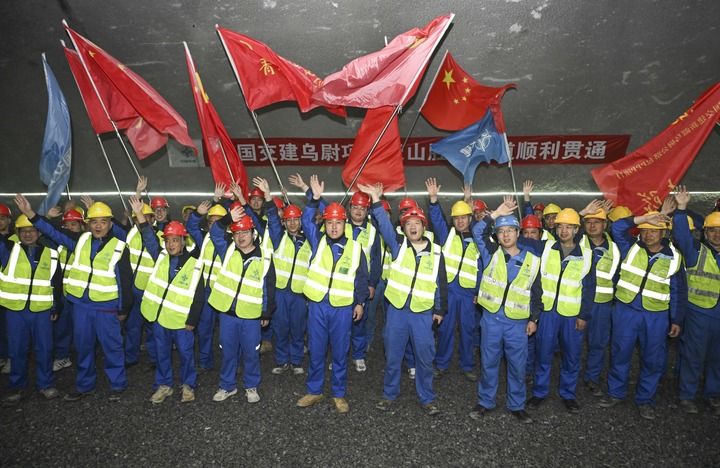 施工歷時(shí)52個(gè)月,天山勝利隧道左右行車雙主洞和中導(dǎo)洞“三洞”全線貫通。