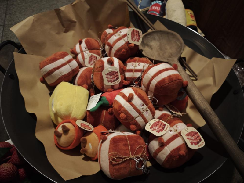 2024年,這種看上去有些幼稚的無(wú)實(shí)物表演形式風(fēng)靡全國(guó),與之密不可分的毛絨文創(chuàng)掀起了市場(chǎng)新風(fēng)暴。首先出圈的是今夏甘肅省博物館推出的麻辣燙毛絨產(chǎn)品,其搭配“過(guò)家家式”互動(dòng)體驗(yàn),迅速火爆全網(wǎng)并蔓延開(kāi)來(lái)。西安“絨饃饃”、新疆馕餅子、蘇州“蟹黃黃”、杭州蔥包燴、天津煎餅馃子、北京稻香村糕點(diǎn)、福州佛跳墻等毛絨產(chǎn)品遍地開(kāi)花。在社交平臺(tái)上,#中國(guó)人有自己的jellycat# #萬(wàn)物皆可毛絨#成為熱門話題。