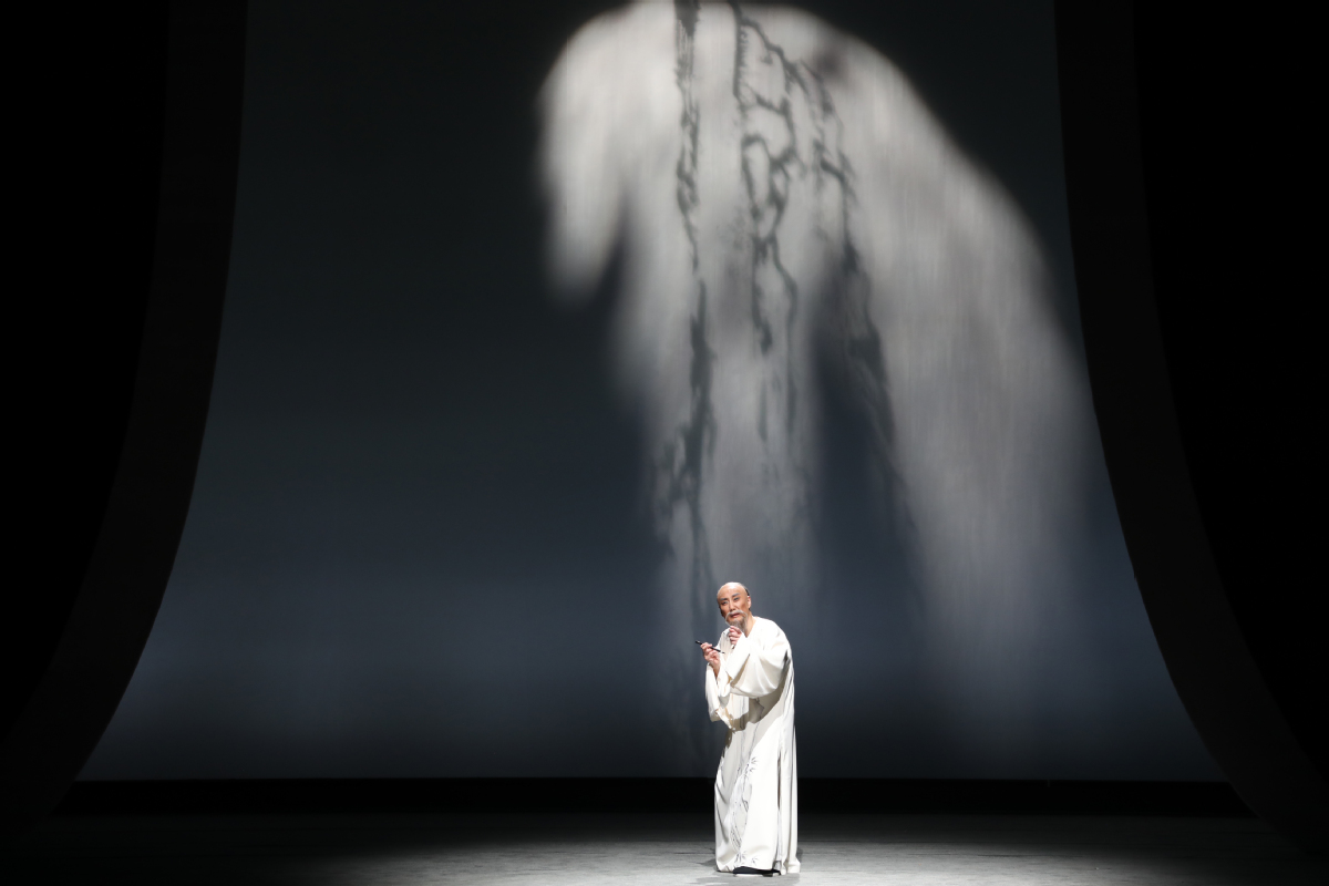 李政成的精湛表演則使創(chuàng)作完美閉環(huán)。在描繪鄭板橋繪畫菊花與蘭花的情景時(shí),他巧妙地采用了文戲武唱的手法,別具匠心地展現(xiàn)了鄭板橋的才華與骨氣。而在劇終部分,長(zhǎng)達(dá)十多分鐘、包含56個(gè)核心唱段的唱腔如波浪般層層推進(jìn),將鄭板橋一生的感悟推至觀眾心底。舞臺(tái)上的清冷視覺效果與演員熾熱的情感表達(dá)形成了鮮明的對(duì)比,在戲劇的張力中,一個(gè)有溫度、有深度、有情懷的鄭板橋仿佛從歷史中走來,真正“活”了起來。