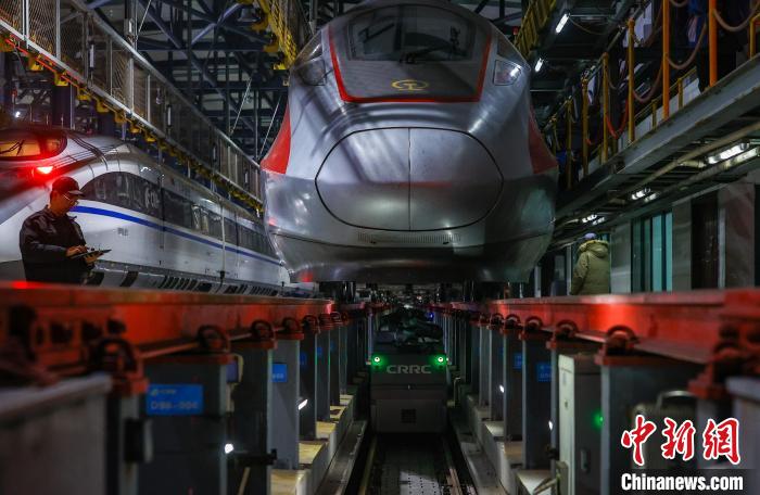 春運(yùn)即將啟幕,1月13日晚11時(shí)許,走進(jìn)華中最大動(dòng)車檢修基地——武漢動(dòng)車段,武漢動(dòng)車運(yùn)用車間里燈火通明,伴隨鳴笛聲和通風(fēng)機(jī)轟隆隆的聲音,一列列動(dòng)車或緩緩駛?cè)霗z修庫,或停留在軌道進(jìn)行檢修。
