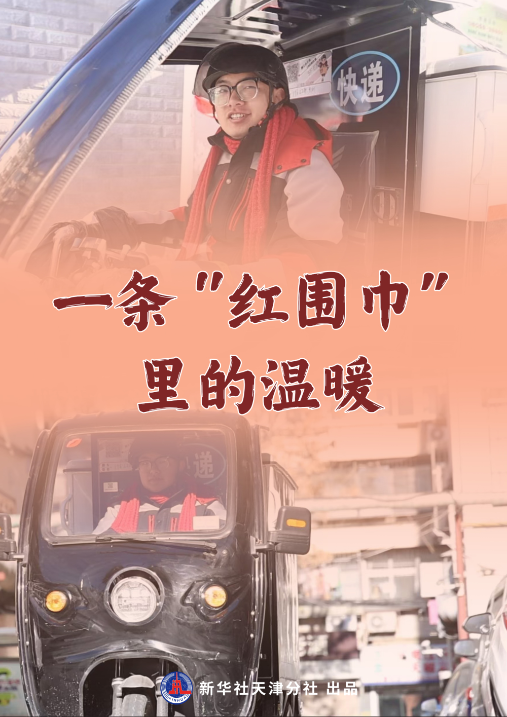 張德?tīng)氖秦?fù)責(zé)天津市河北區(qū)望海樓街道昆云里社區(qū)快件派送的快遞員。最近,他每天都系著一條紅圍巾,在街道上格外引人注目。張德?tīng)牟弊由蠂倪@條紅圍巾就是社區(qū)志愿者大姨們親手織的。社區(qū)工會(huì)驛站將圍巾送給了他,以此來(lái)感謝他對(duì)社區(qū)的無(wú)私奉獻(xiàn)。