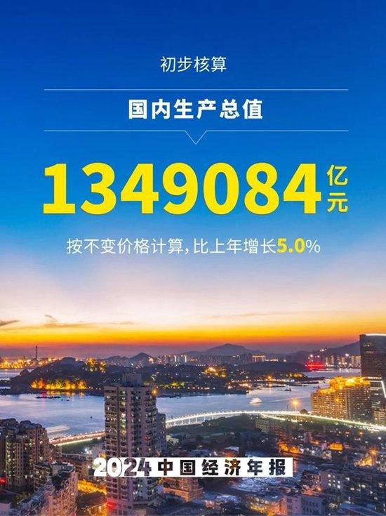 1、初步核算,國內生產總值1349084億元,按不變價格計算,比上年增長5.0%。
