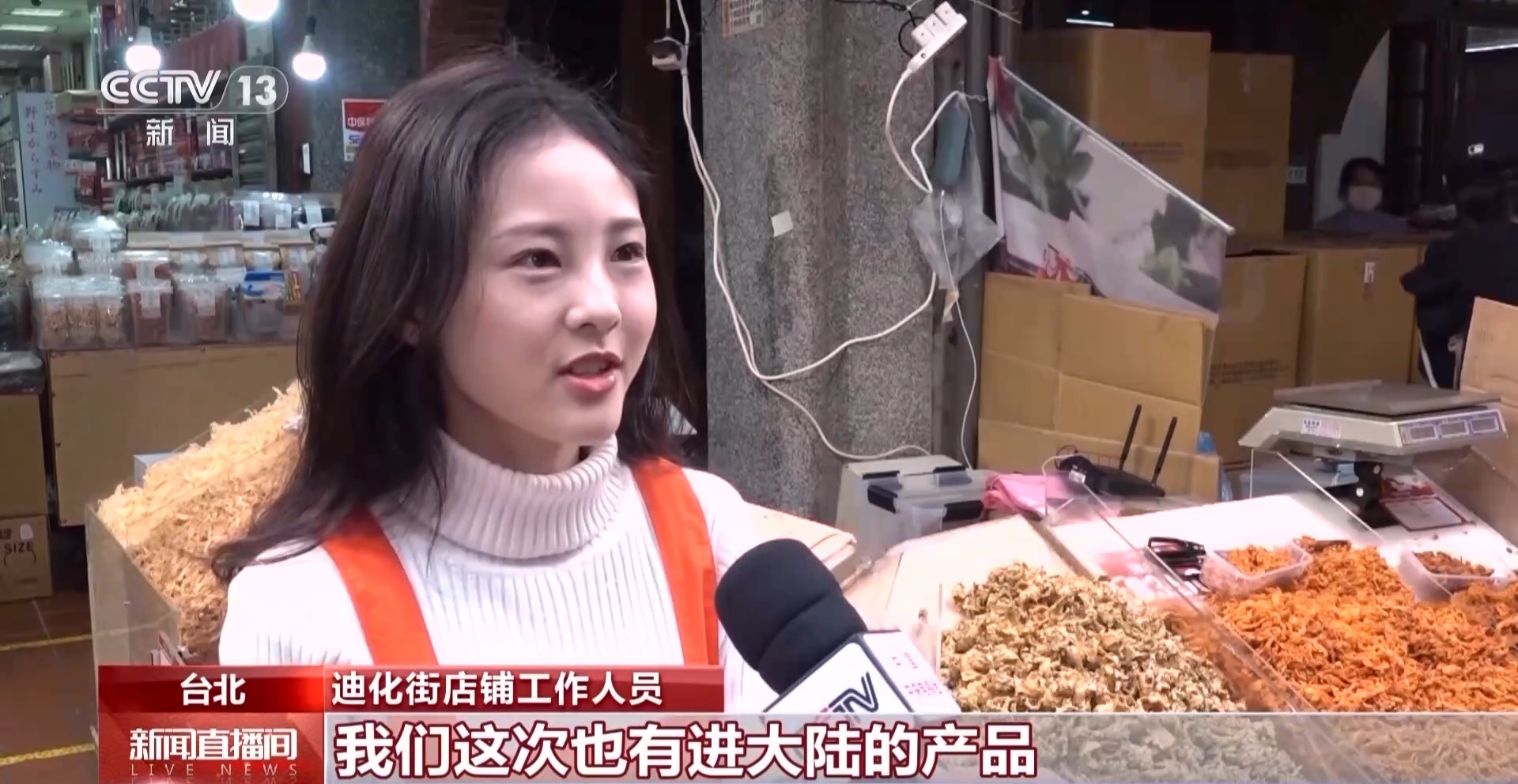 迪化街店鋪工作人員:我們這次也有進(jìn)大陸的產(chǎn)品,是小黃魚(yú)酥跟白帶魚(yú)酥,但是白帶魚(yú)酥因?yàn)檎娴馁u得太好了,所以我們前幾天就已經(jīng)斷貨了。
