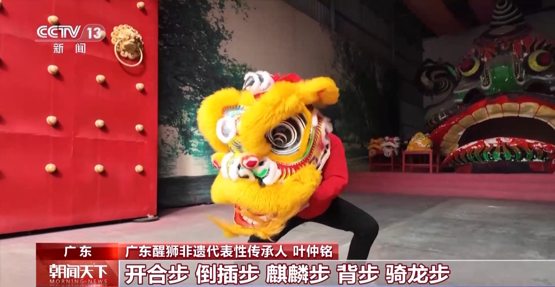 廣東醒獅非遺代表性傳承人 葉仲銘:南獅的步行步法全部是來源于武術(shù)的步行步法。開合步、倒插步、麒麟步、背步、騎龍步、虛步、吊馬、金雞獨立步等等,都會出現(xiàn)在舞獅當中。梅花樁也是一種舞獅當中的陣法,當中有河流有山,其實是給人一種啟發(fā),要勇往直前,勇于承擔責任,繼續(xù)為美好明天出發(fā)。