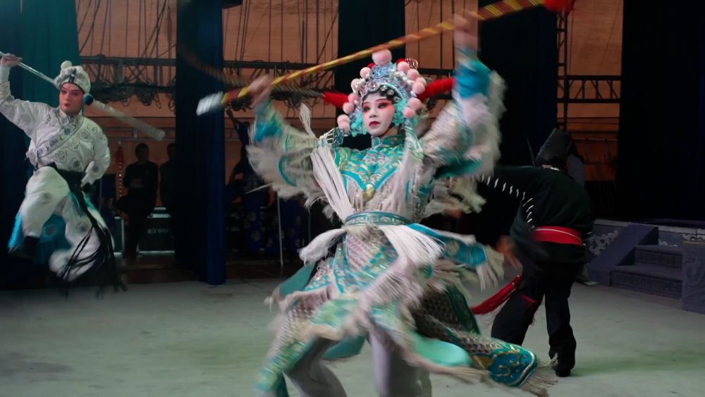對于浙江金華人來說,欣賞一場精彩的婺劇表演是春節(jié)必不可少的年味兒,好戲登場,熱鬧非凡。戲一開場,身著精致戲服的婺劇演員動(dòng)作干練,在舞臺上空翻、對擂,鑼鼓聲、唱段聲、喝彩聲交織在一起,戲曲氛圍那是相當(dāng)濃厚。