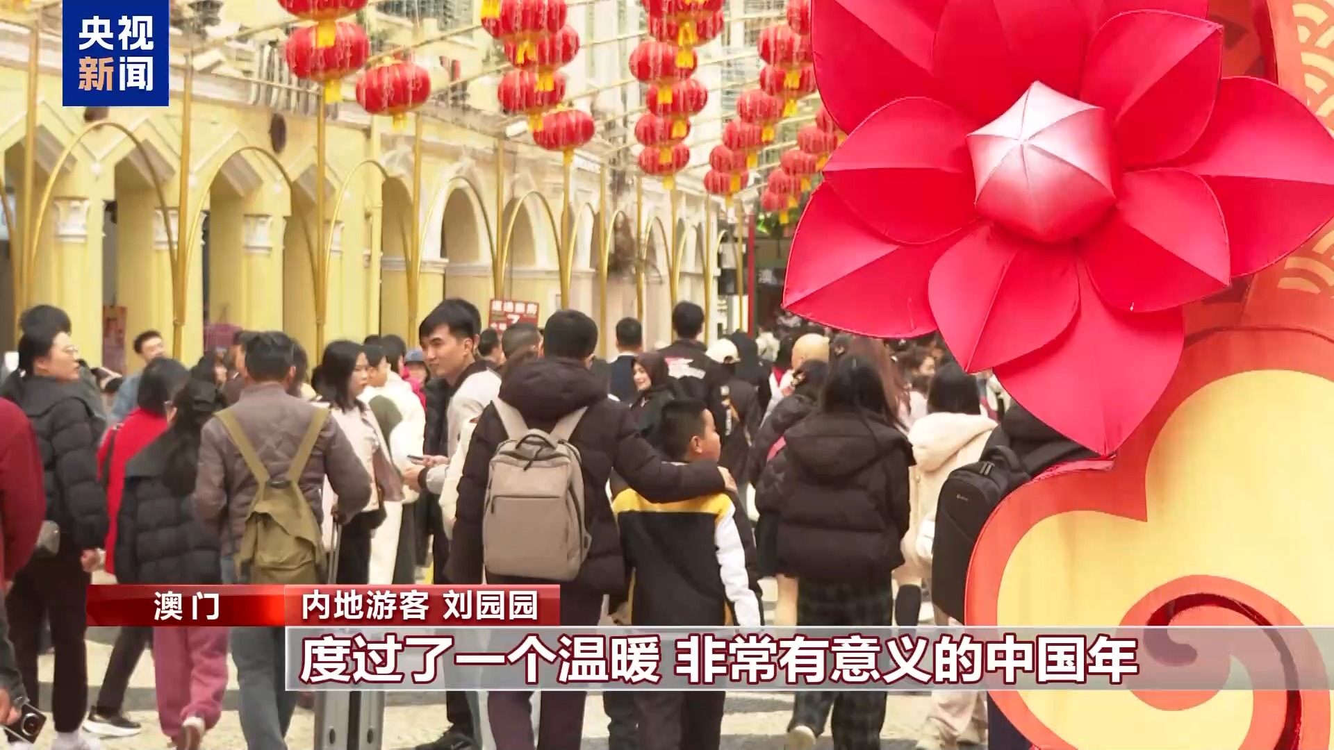 內(nèi)地游客 劉園園:這是我們第一次來(lái)到澳門,感受到了非常濃厚的節(jié)日氛圍,度過(guò)了一個(gè)溫暖、非常有意義的中國(guó)年,也希望祖國(guó)繁榮昌盛,人民幸福安康。