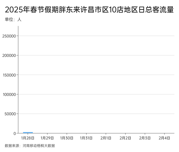 河南移動(dòng)梧桐大數(shù)據(jù)顯示,2月2日至4日,胖東來(lái)許昌市區(qū)10店地區(qū)日均總客流量為假期前五天的3倍多。