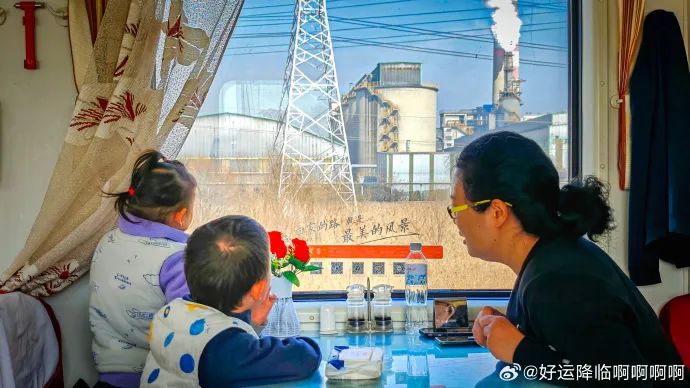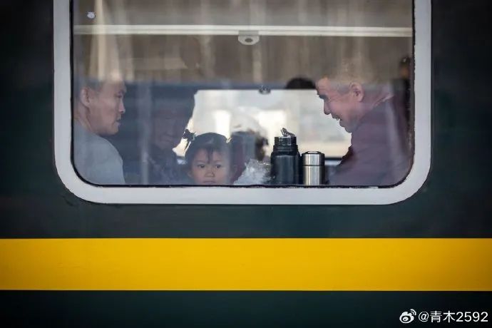 烏魯木齊至沈陽的T304次列車,途經(jīng)巴彥淖爾站時,小女孩看著窗外,爺爺疼愛地看著孫女。