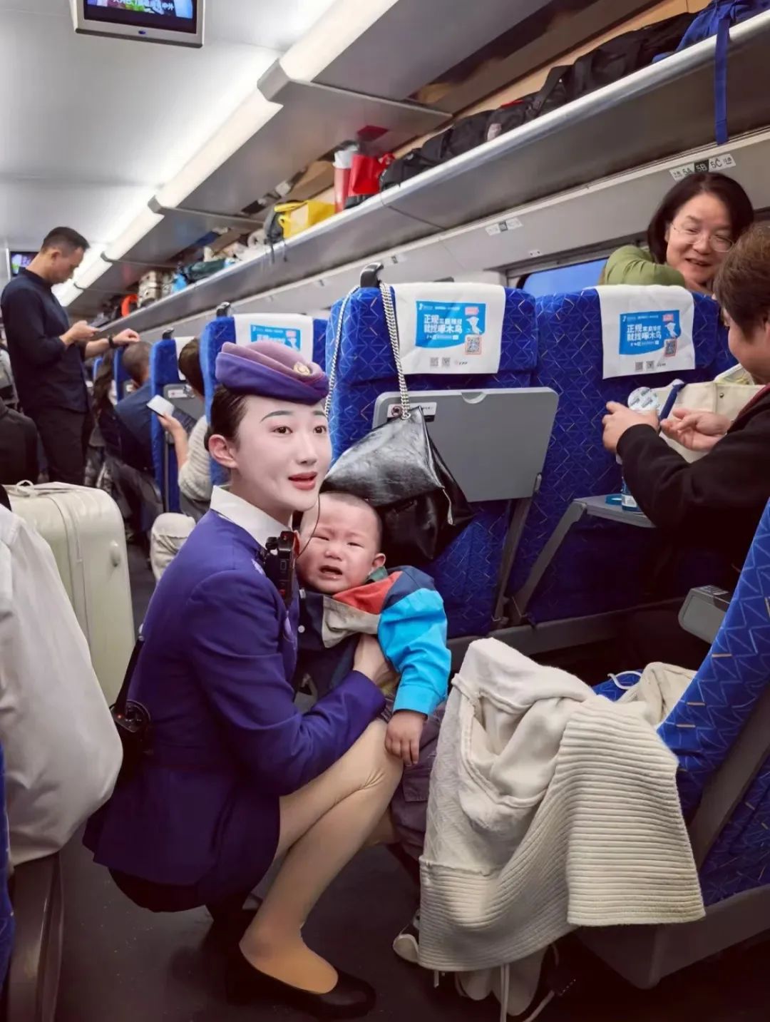 中國鐵路濟南局集團有限公司青島客運段北京動車隊的賈雯乘務(wù)員,耐心地幫助旅客安撫哭鬧的孩子,讓我在新的一年感受到了列車上的溫馨與真情。