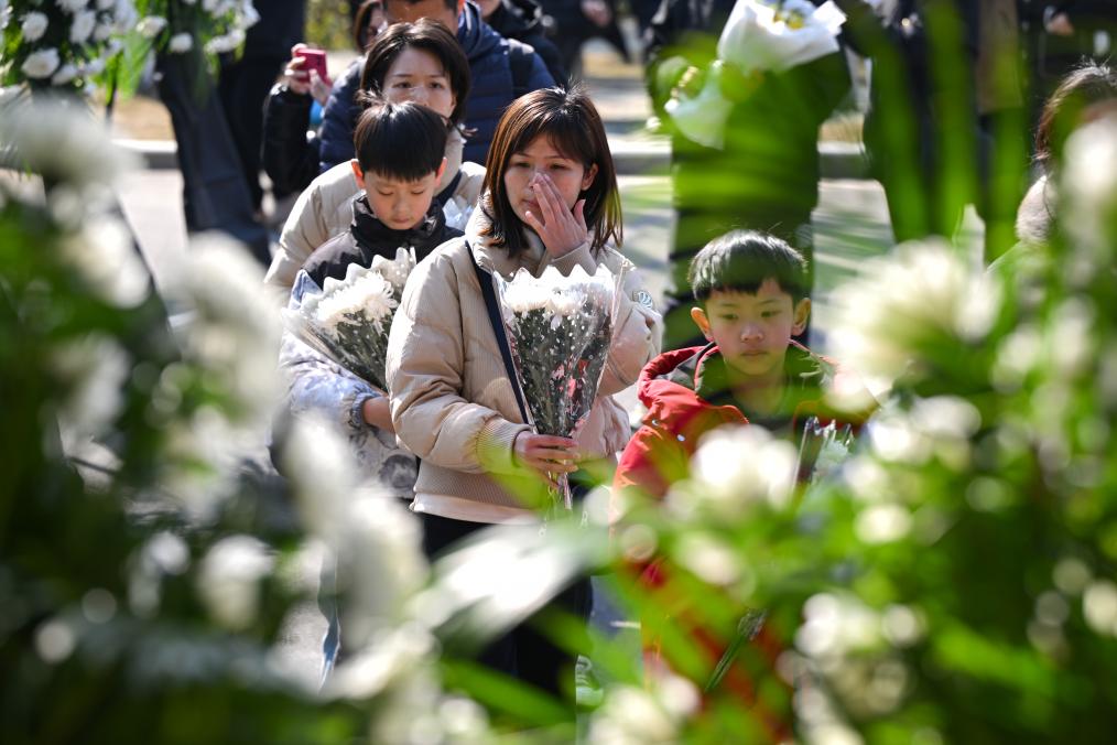 2025年2月7日,在上海交通大學(xué)閔行校區(qū),師生在追思活動現(xiàn)場默哀。新華社記者 劉穎 攝
