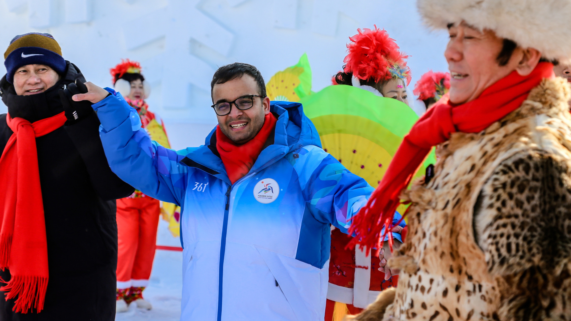 來自尼泊爾的留學(xué)生拉姆已經(jīng)在中國留學(xué)三年多的時(shí)間了,這次他在亞布力賽區(qū)擔(dān)當(dāng)志愿者。他告訴記者,盡管自己對(duì)中國的春節(jié)有些許了解,但許多非遺體驗(yàn)對(duì)他來說還是第一次嘗試。