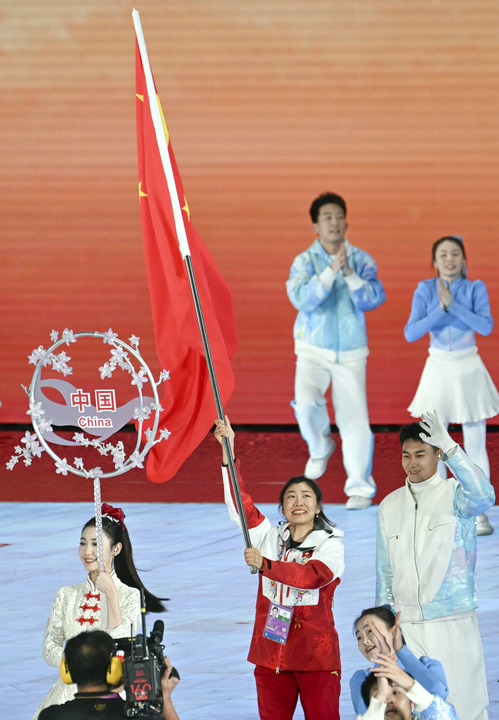 自由式滑雪運動員徐夢桃擔(dān)任中國代表團的旗手。35歲的她,是中國雪上項目的傳奇人物,實現(xiàn)了冬奧會、世錦賽、世界杯等多項大賽的大滿貫,成為中國雪上項目首位實現(xiàn)“全滿貫”的運動員。在本屆亞冬會上,她以 90.94 分的成績奪得女子空中技巧金牌,還帶領(lǐng)團隊在多個項目中斬獲佳績。她堅韌不拔的精神和卓越的競技表現(xiàn),正是中國冰雪運動員的代表。