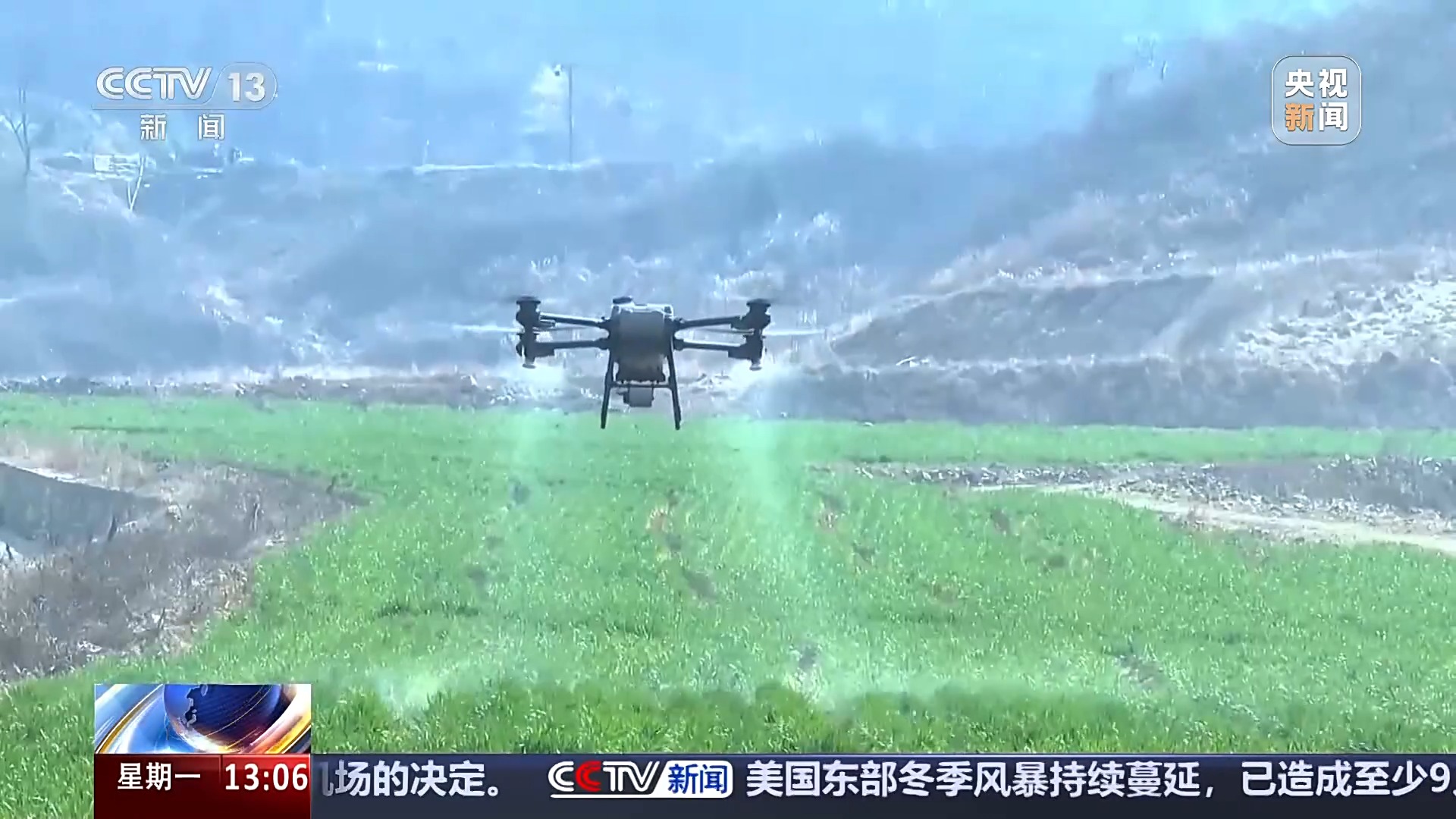 為保障春耕備耕工作的順利進行,在小麥基地里,兩架滿載肥料的植保無人機正沿著設定航線精準施肥,整個過程快捷高效。