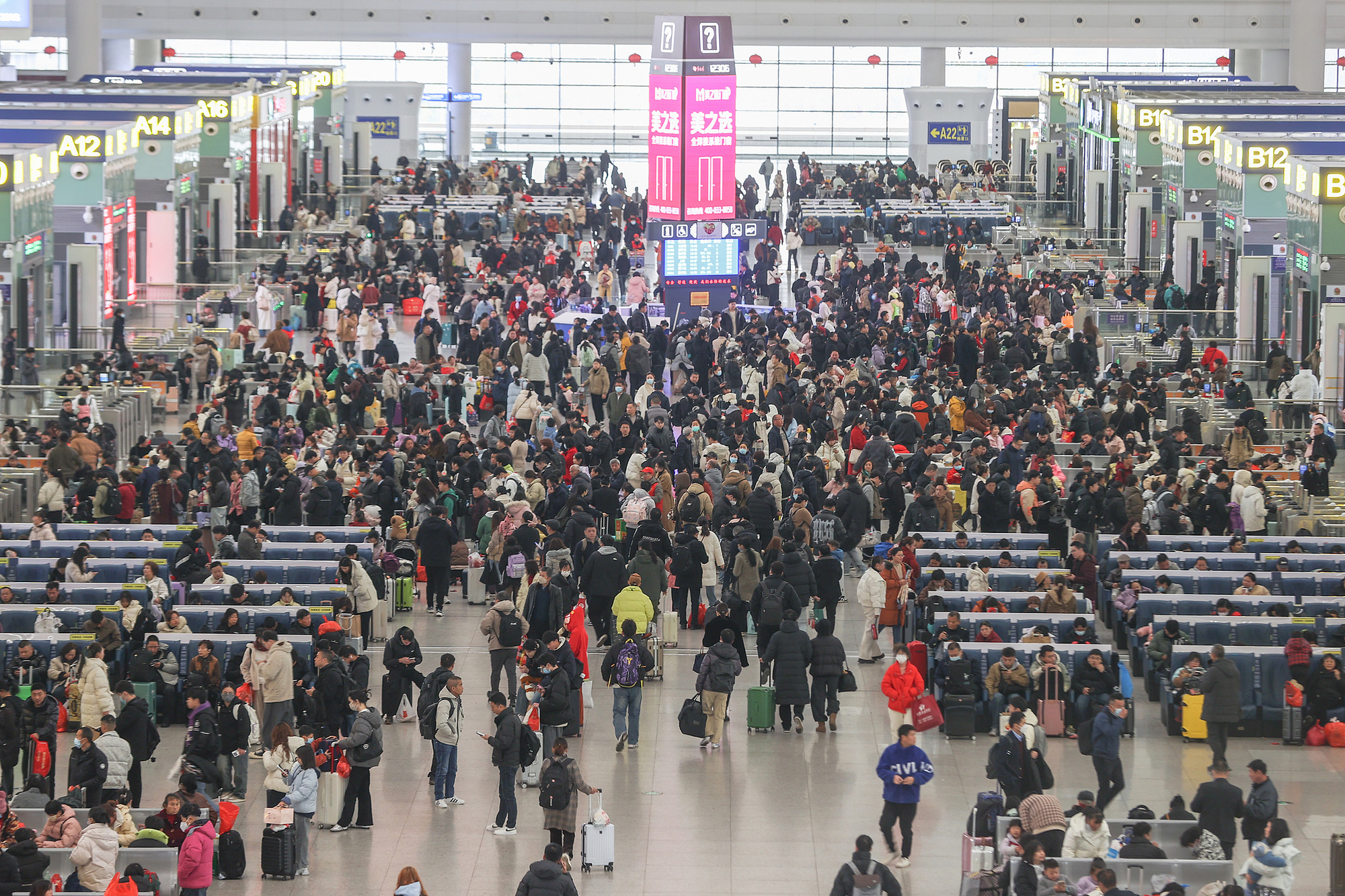 江西南昌西站,旅客在候車大廳內(nèi)等候乘車