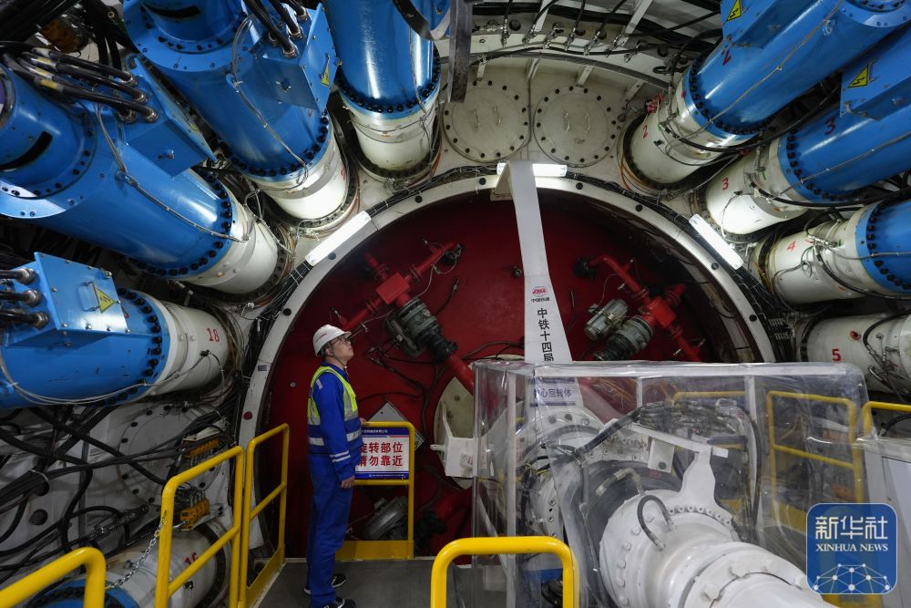 2月25日,中鐵十四局技術(shù)人員在甬舟鐵路金塘海底隧道“甬舟號(hào)”盾構(gòu)機(jī)內(nèi)關(guān)注設(shè)備運(yùn)行情況。