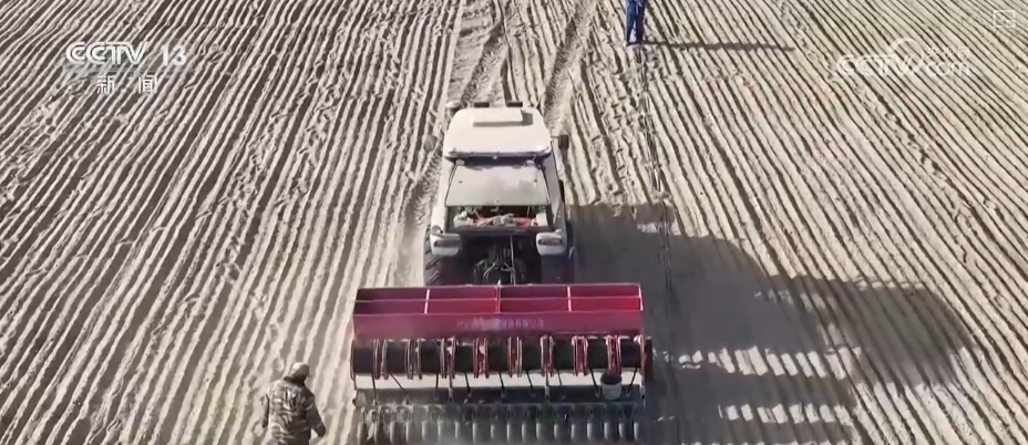 近日,甘肅酒泉金塔縣的10萬(wàn)畝小麥開(kāi)始播種。當(dāng)?shù)負(fù)屪マr(nóng)時(shí),推廣機(jī)械化手段,助力農(nóng)業(yè)生產(chǎn)。