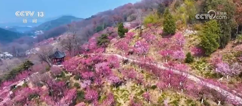 在連云港花果山,23000多株梅花灼灼盛放,粉紅相間,如霞似錦。慕名前來的游人徜徉花海,拍照留念,感受春的氣息。
