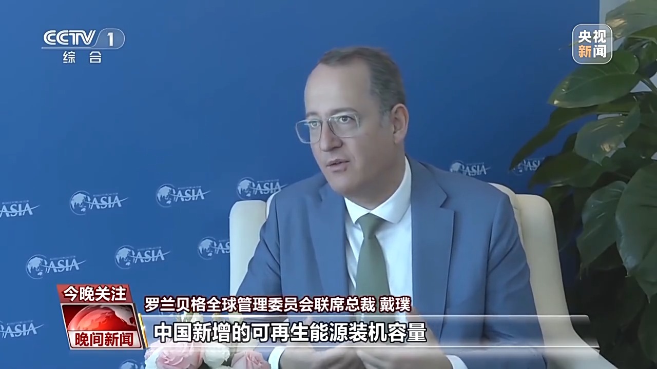 羅蘭貝格全球管理委員會(huì)聯(lián)席總裁 戴璞:去年,中國(guó)新增的可再生能源裝機(jī)容量相當(dāng)于世界其他地區(qū)新增的總和,中國(guó)綠色發(fā)展成效明顯?,F(xiàn)在全球都需要向綠色轉(zhuǎn)型,中國(guó)提供了一個(gè)成本低且高效的方案。