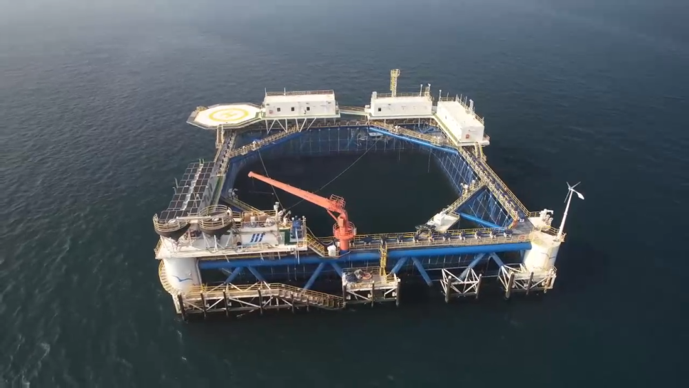 在距離大陸岸線42海里的海域坐落著這樣的深遠(yuǎn)海智能網(wǎng)箱平臺,網(wǎng)箱長寬均為68米,布設(shè)500個(gè)監(jiān)測點(diǎn),配備了聲納、激光雷達(dá)等設(shè)備。這樣的1個(gè)網(wǎng)箱每年能產(chǎn)出100萬條魚,只需要4個(gè)工人來操作。