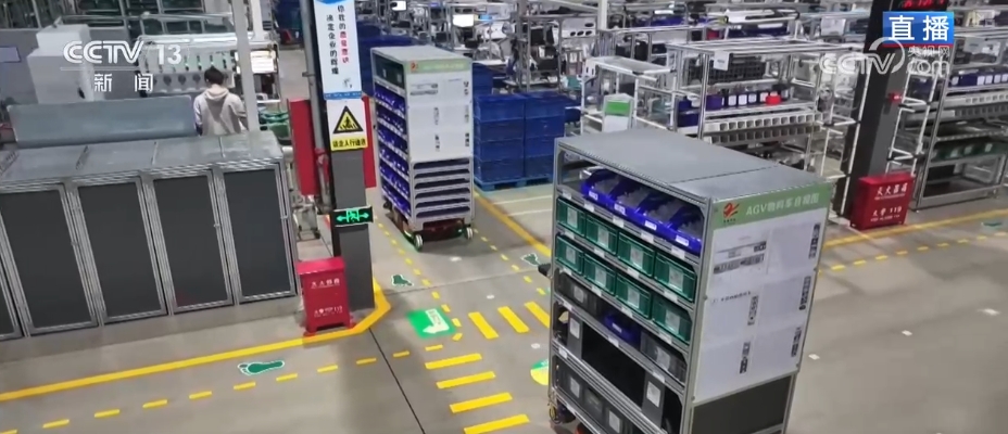 走進企業(yè)生產(chǎn)車間,最直觀的感受就是高度的自動化。這些忙碌的機器人,正在把物料運送到生產(chǎn)線的各個點位上。地面上這些二維碼是為機器人鋪設(shè)的“數(shù)字軌道”,能夠引導(dǎo)機器人有條不紊地精準(zhǔn)配送。在整個車間,從原料的上料、流轉(zhuǎn)到成品的加工、入庫,自動化率達(dá)到了90%以上。盡管2025年一季度企業(yè)的訂單增長了40%,各條生產(chǎn)線24小時不停工生產(chǎn),也能確保訂單的如期交付。