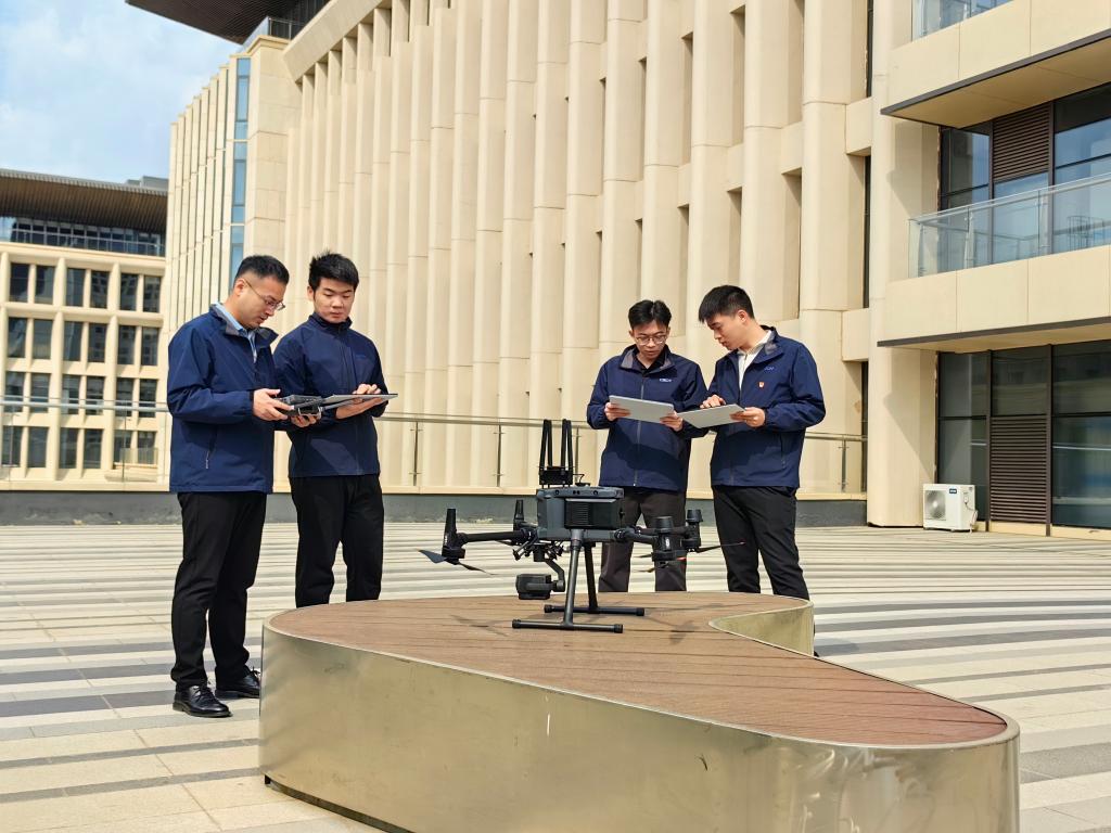 中國星網員工對無人機開展測試工作(3月28日攝)。新華社記者 齊雷杰 攝