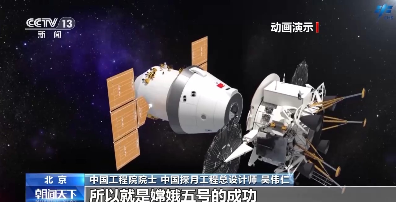 中國(guó)工程院院士 中國(guó)探月工程總設(shè)計(jì)師 吳偉仁:當(dāng)時(shí)就想利用嫦娥五號(hào)來(lái)驗(yàn)證我們后續(xù)載人登月技術(shù),載人登月就是在軌道上交會(huì)對(duì)接,然后人下去探測(cè),探測(cè)完后月面起飛,在軌道上交會(huì)對(duì)接,然后人再進(jìn)入返回器,返回器再和軌道器脫離,脫離過(guò)后,返回器把人送回地球。所以嫦娥五號(hào)的成功,為未來(lái)我們載人登月奠定基礎(chǔ),幾乎把所有的關(guān)鍵技術(shù)都驗(yàn)證了一遍。