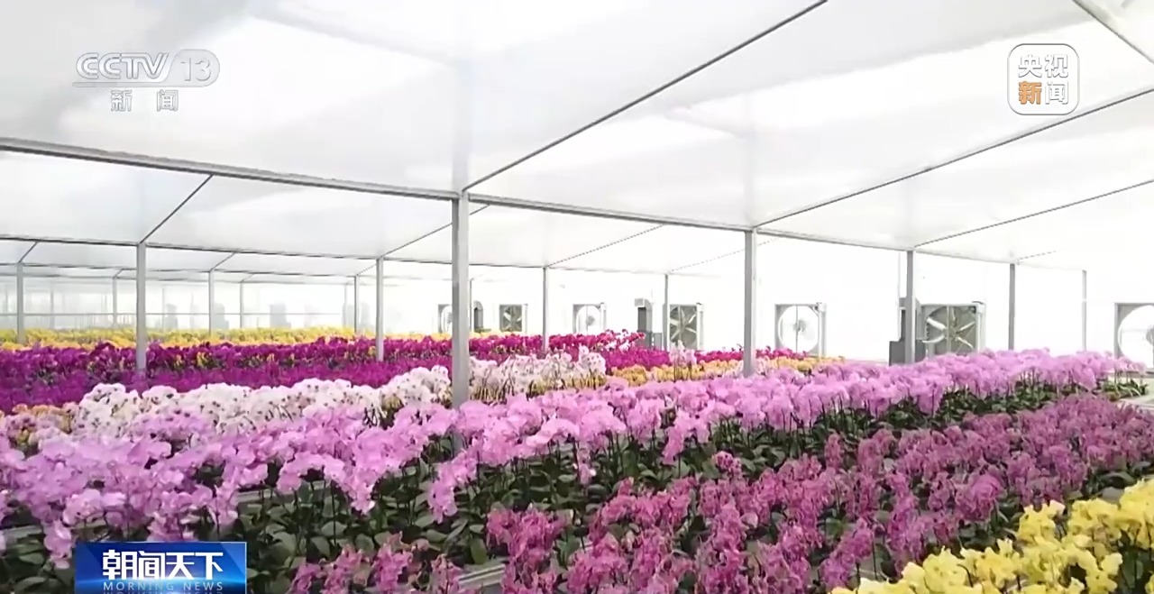 工作人員告訴記者,蝴蝶蘭大世界安裝了200多個智能傳感器,采用5G物聯(lián)網(wǎng)技術(shù),精準調(diào)控溫度、濕度、光照、通風等生長因素,可以實現(xiàn)“定時開花”。