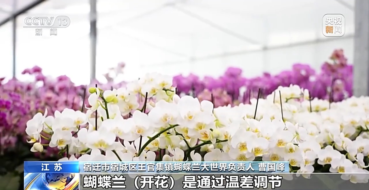 宿遷市宿城區(qū)王官集鎮(zhèn)蝴蝶蘭大世界負責人 曹國峰:其實蝴蝶蘭的自然花期應該是農(nóng)歷年開始一直到“五一”,這是自然狀態(tài)。現(xiàn)在我們通過技術(shù)干預,想哪一天開就哪一天開。蝴蝶蘭開花是通過溫差調(diào)節(jié),這個時候我們就要用空調(diào),一些恒溫設備以及除濕設備進行恒溫控制。
