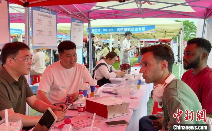 留學(xué)生維克托(Victor)打算直接當(dāng)老板?!拔也徽夜ぷ鳎襾?lái)這里找合作伙伴。”他說(shuō),得知這里有較為集中的商貿(mào)企業(yè)招聘活動(dòng)后,他便打算來(lái)“一站式”了解義烏的外貿(mào)發(fā)展,尋求商業(yè)機(jī)遇。