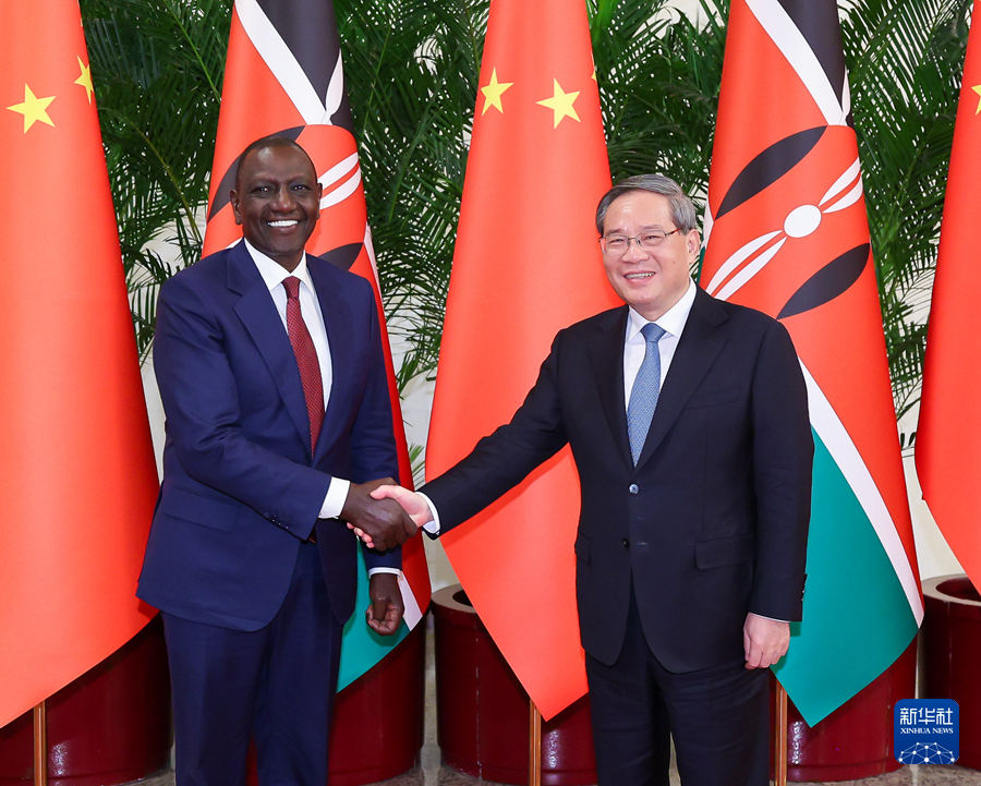 李強(qiáng)指出,中肯經(jīng)濟(jì)互補(bǔ)性強(qiáng),合作空間廣闊。中方愿同肯方繼續(xù)高質(zhì)量共建“一帶一路”,扎實(shí)推進(jìn)基礎(chǔ)設(shè)施等重大項(xiàng)目,深化金融、數(shù)字經(jīng)濟(jì)、綠色能源、農(nóng)業(yè)科技、藍(lán)色經(jīng)濟(jì)等領(lǐng)域合作,共同培育壯大發(fā)展新動(dòng)能,推動(dòng)取得更多實(shí)際成果。中方愿進(jìn)口肯方更多優(yōu)質(zhì)產(chǎn)品,促進(jìn)兩國(guó)貿(mào)易優(yōu)化平衡發(fā)展。雙方要進(jìn)一步便利人員往來,加強(qiáng)文化、旅游、媒體等領(lǐng)域合作,推動(dòng)世界文明交流互鑒,增進(jìn)理解、友誼與信任。當(dāng)前國(guó)際形勢(shì)變亂交織,中國(guó)和非洲作為全球南方重要力量,應(yīng)更加緊密團(tuán)結(jié)協(xié)作,共同應(yīng)對(duì)困難挑戰(zhàn),攜手促進(jìn)發(fā)展繁榮。中國(guó)愿同肯尼亞等非洲各國(guó)一道努力,全面加速落實(shí)中非合作論壇北京峰會(huì)成果特別是“十大伙伴行動(dòng)”,踐行真正的多邊主義,以新時(shí)代全天候中非命運(yùn)共同體建設(shè)帶動(dòng)全球南方合作深化發(fā)展,引領(lǐng)和推動(dòng)構(gòu)建人類命運(yùn)共同體。