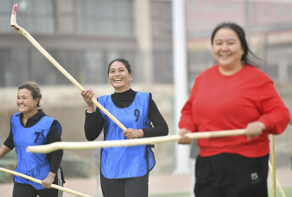 在奔跑擊球中,阿依古麗和隊友也感受到這項古老集體運動的魅力,她們在場上沒有明確的位置之分,但又默契地熟知各自的特點?!鞍⒁拦披愑屑で椤薄芭撂峁披惖乃俣瓤臁薄巴履嵘澈沟牧獯蟆薄鞍髂竞箵羟驕省薄恢皇躯湡崆颍齻冏鳛榇謇锏奈捏w骨干,還常出現(xiàn)在籃球、拔河、踢毽子等比賽中,成為一道靚麗風(fēng)景線。