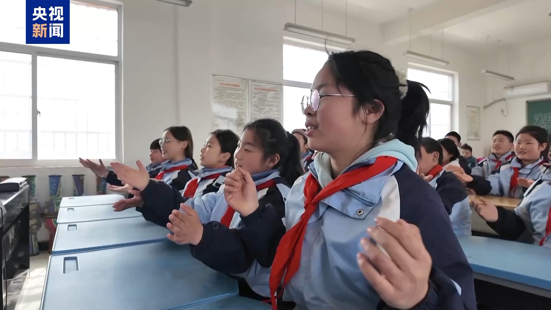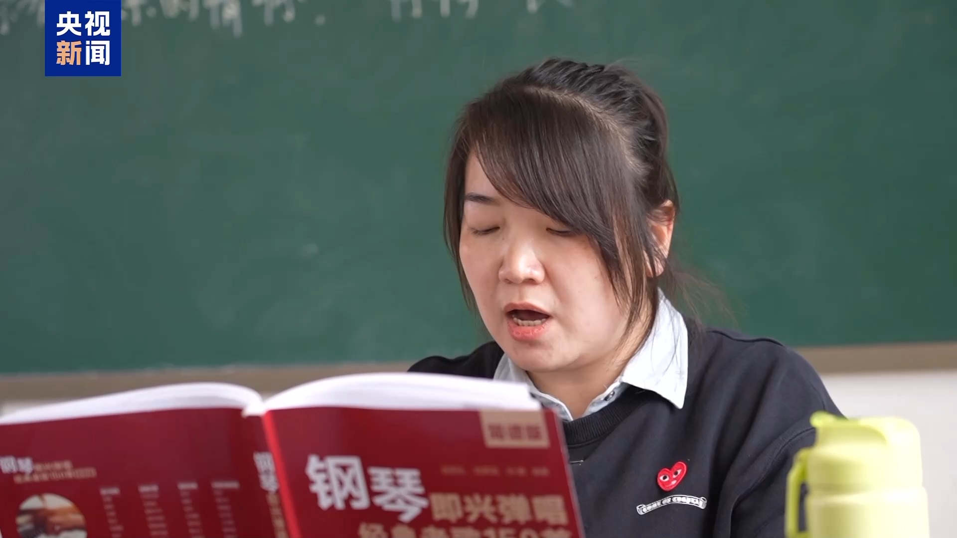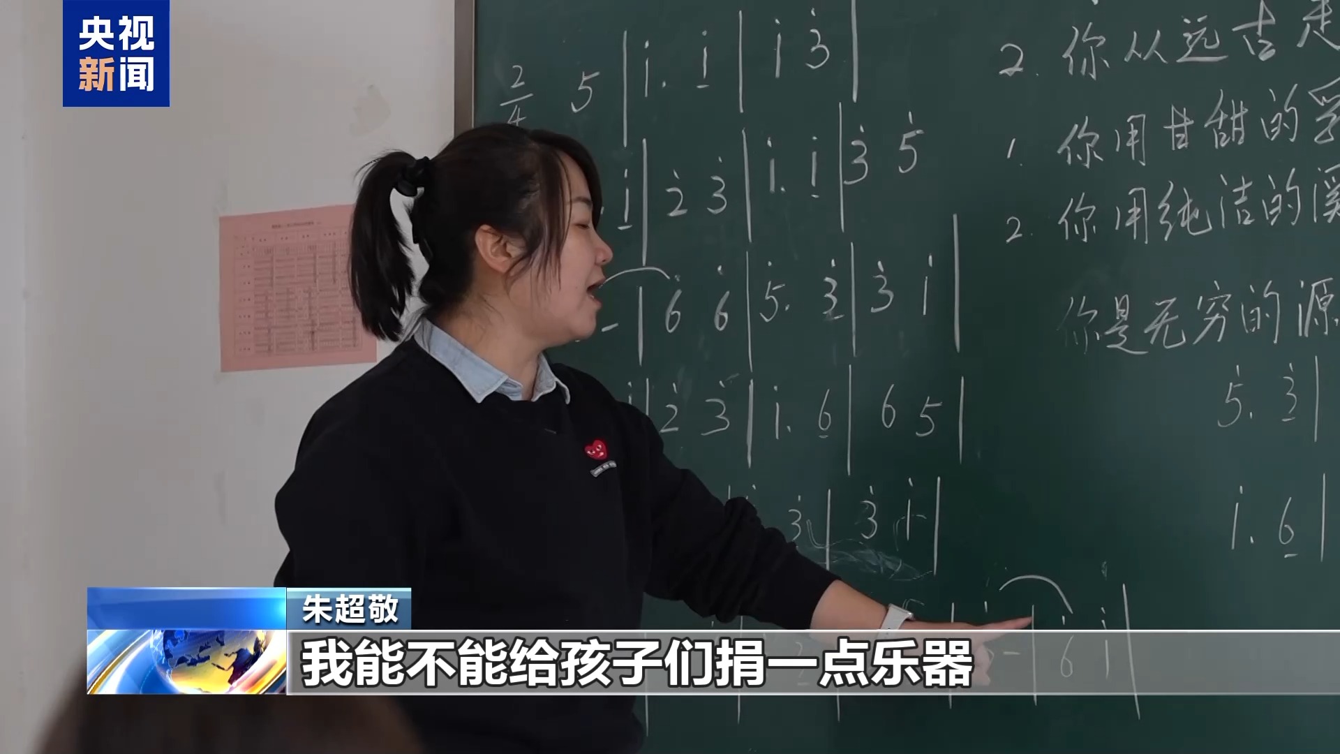 朱超敬:調(diào)完琴之后,他正在教室上課,我一下就萌發(fā)了那種小時候上課的狀態(tài),孩子們特別可愛。他正在上課,我就跟梁老師說,我能不能給大家教個歌,或者上一節(jié)課。