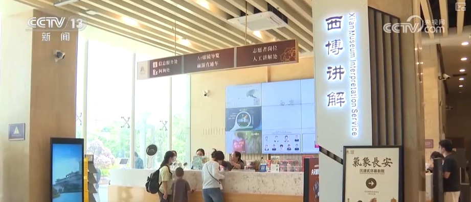 西安博物院公共服務(wù)部工作人員楊蕊伊介紹,“五一”期間,票務(wù)、安保、保潔人員增加了班次,同時(shí)也增設(shè)了大量的值班人員。在講解方面,講解人員、志愿者人員都增加了人數(shù),同時(shí)也增加了講解班次。他們?cè)谖鏖T(mén)、北門(mén)都設(shè)有游客服務(wù)中心,為廣大游客提供便利服務(wù)。針對(duì)于國(guó)際游客,他們有英文版的自助導(dǎo)覽機(jī)提供服務(wù)。
