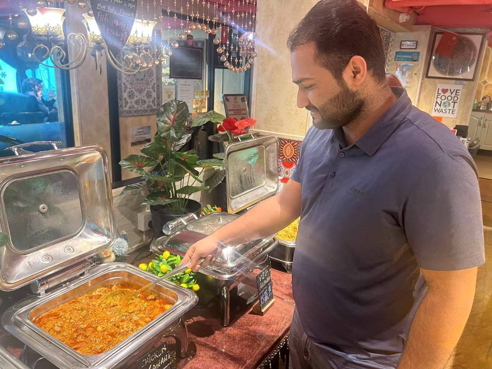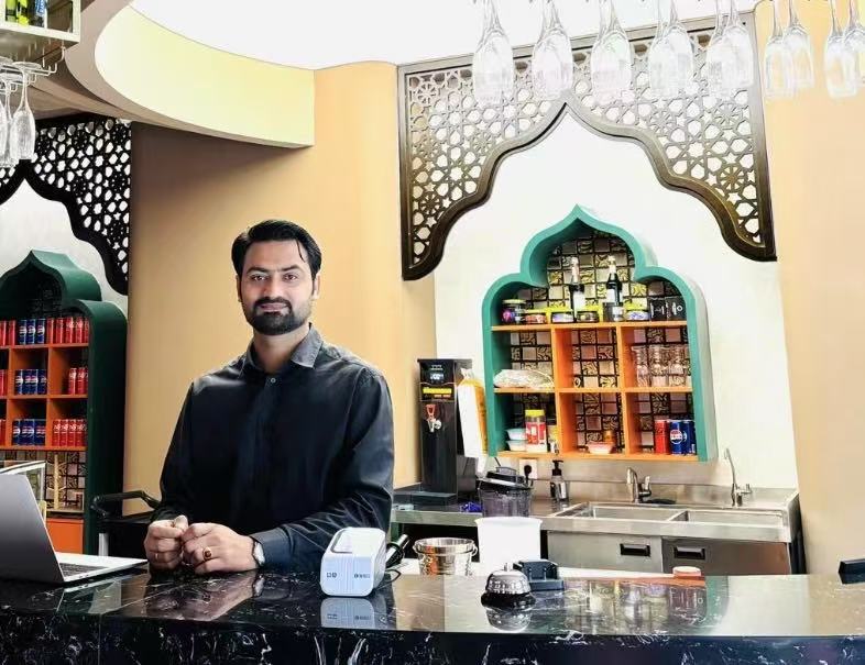 我們在中國的網(wǎng)絡(luò)平臺上都會發(fā)送電子優(yōu)惠券,也有一些排行榜把我們店放上去,所以中國消費者就會特意過來嘗試。我們有時也有學生折扣、會員卡的活動。得益于中國的‘過境免簽’政策,我們店里有了更多的外國游客,一些外國游客可能不會用電子優(yōu)惠券,我們也有一些實體店的優(yōu)惠活動。最近中國的一些‘促消費’活動我們也參加了,比如在美食節(jié)攤位上展示巴基斯坦美食,讓大家都嘗嘗。對于我們來說,不僅僅宣傳了我們的美食,還可以宣傳巴基斯坦文化?,F(xiàn)在我們在成都剛開了一家新店,未來我們還想在西安也開一家。
